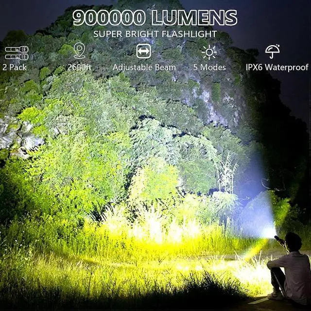 Experience ultimate brightness and reliability with our 990000 lumen rechargeable flashlight 2-pack. Perfect for home emergencies, camping, and outdoor adventures.