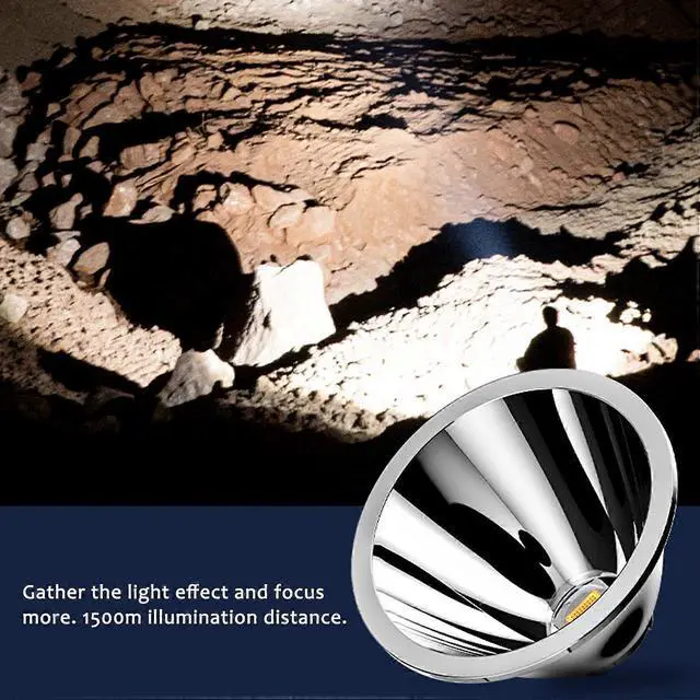 Super Bright LED: High-lumen bulb delivers brilliant floodlight or focused spotlight with a 1500m beam distance for maximum visibility.