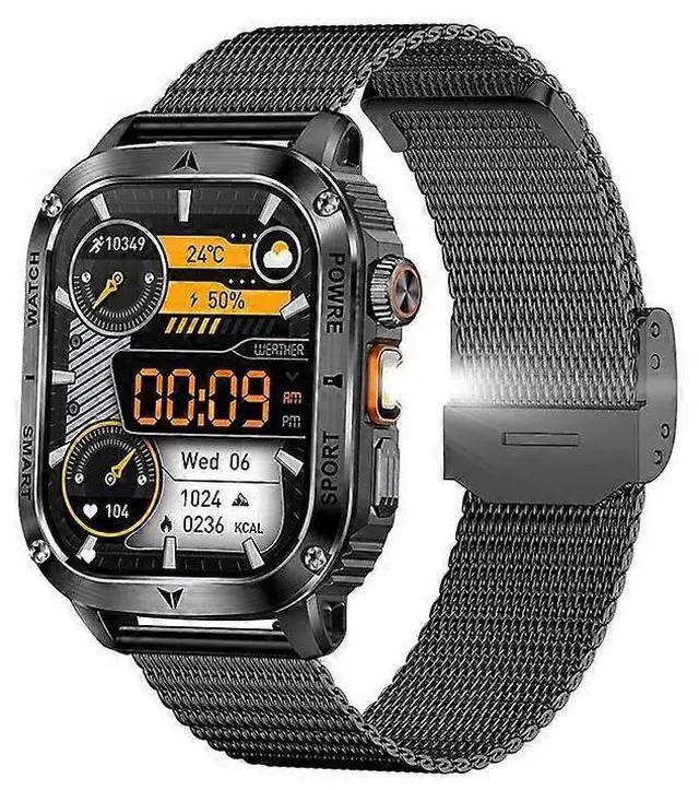 2.01 -inch IPS Retina display with 240x296 resolution ensures clear, vivid visuals even in direct sunlight for excellent outdoor readability. Built-in flashlight function enhances visibility during night walks or emergencies, lighting up any situation. Dust-resistant and drop-proof design makes it a durable companion for daily adventures and active lifestyles. Monitor continuous heart rate, SpO2, and sleep patterns via smartphone app to track wellness and build healthier habits. Choose from over 100 sports modes to support diverse training goals and activities. Additional features include Bluetooth calling, weather updates, alarms, and customizable watch faces for versatile use in health and lifestyle.
