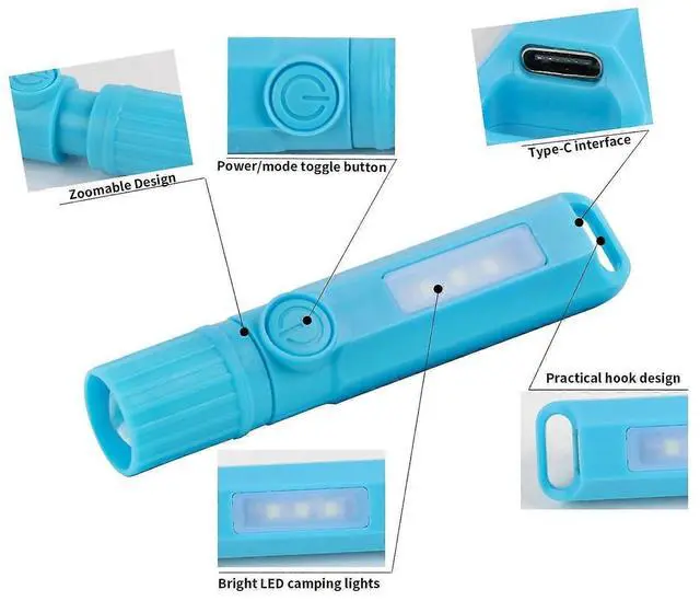 Discover the ultimate portable lighting solution with our USB C rechargeable mini flashlight 3-pack in blue. This compact flashlight set is engineered for versatility and convenience, featuring adjustable focus and multiple lighting modes to suit any need.