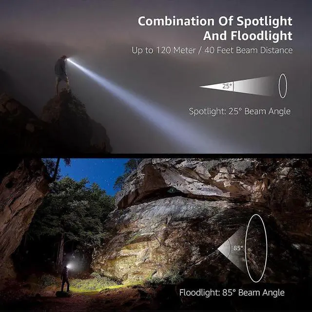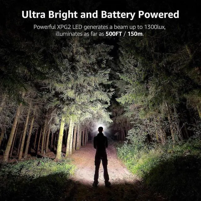 * **1300Lux Super Brightness & Long Runtime**: Powerful LED beam illuminates up to 400FT/120m with an impressive 22-hour runtime on low setting, outperforming most competitors.
