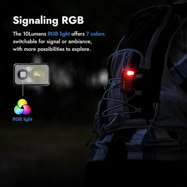 Dual LED light sources: Main white light with 3 modes and RGB auxiliary light with 7 colors