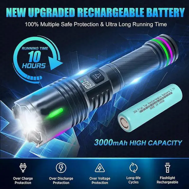 - **Super Bright & Long Range**: Upgraded LED chip delivers 2000 lumens, illuminating objects up to 1000 feet for camping, hiking, or emergencies.