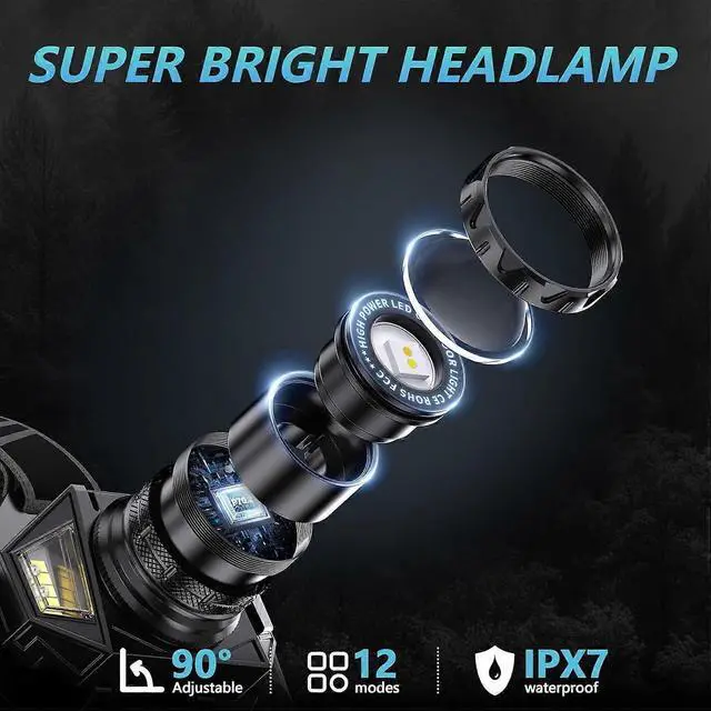 Experience ultimate illumination with our industrial-grade rechargeable LED headlamp, featuring 3000 lumens brightness and 90-hour battery life. Ideal for camping, hiking, work, and emergencies.