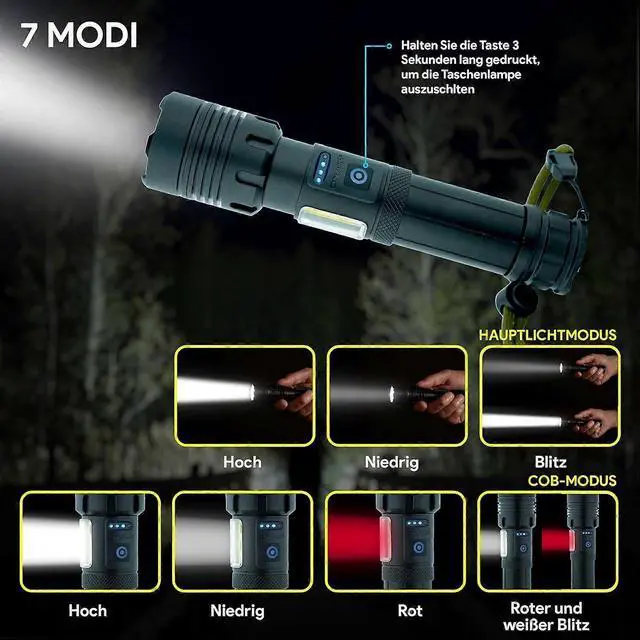 * **Ultra-Bright 1000 Lumens: ** Dual-core LEDs produce a super bright beam with a range of up to 500 meters, cutting through total darkness for camping, hiking, or search and rescue.