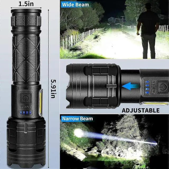 Experience ultimate brightness and reliability with our rechargeable LED flashlight 2-pack, delivering 99, 000 lumens for superior illumination. Ideal for outdoor adventures, emergencies, and daily tasks.
