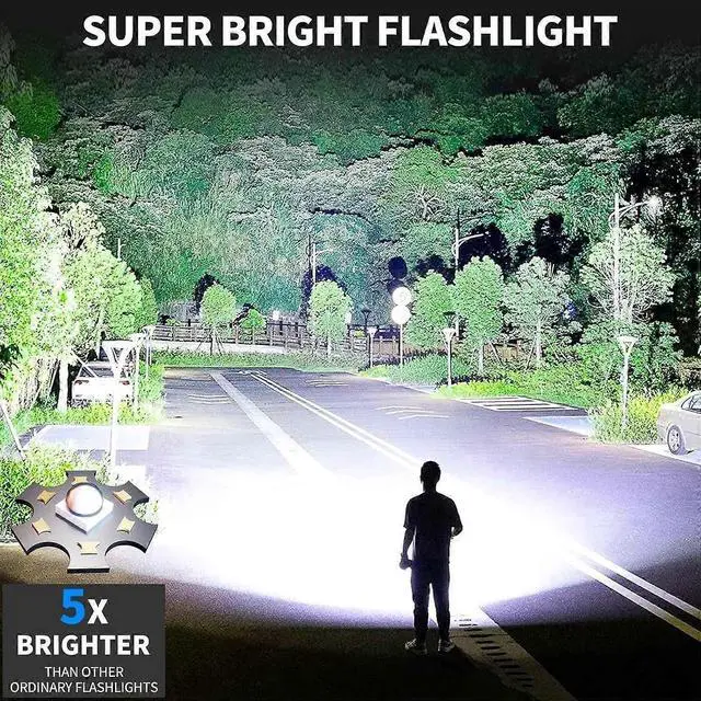 * **Super Bright & High Lumens**: Equipped with advanced LED chips, this flashlight is 20x brighter than standard incandescent lights, ensuring clear visibility in any condition.