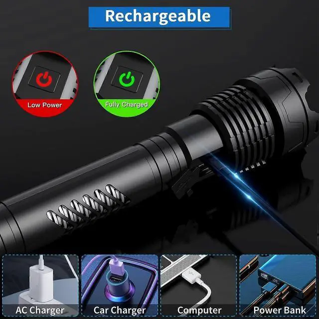 * **Super Bright 6000 Lumens: ** Experience exceptional brightness for clear visibility in dark environments or long-distance viewing, making it ideal for emergencies and outdoor adventures.