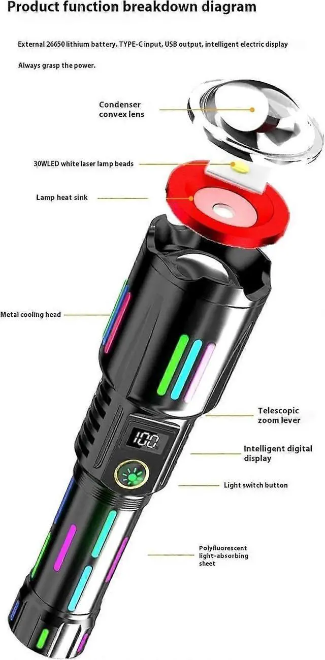 Ultra-bright LED with 3280ft beam distance, 40x brighter than standard flashlights
