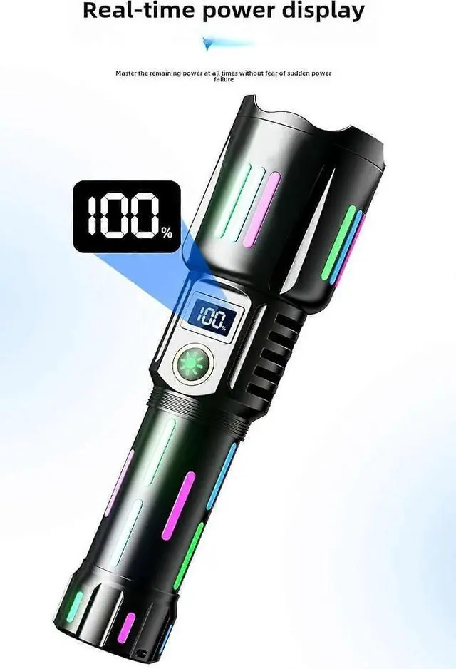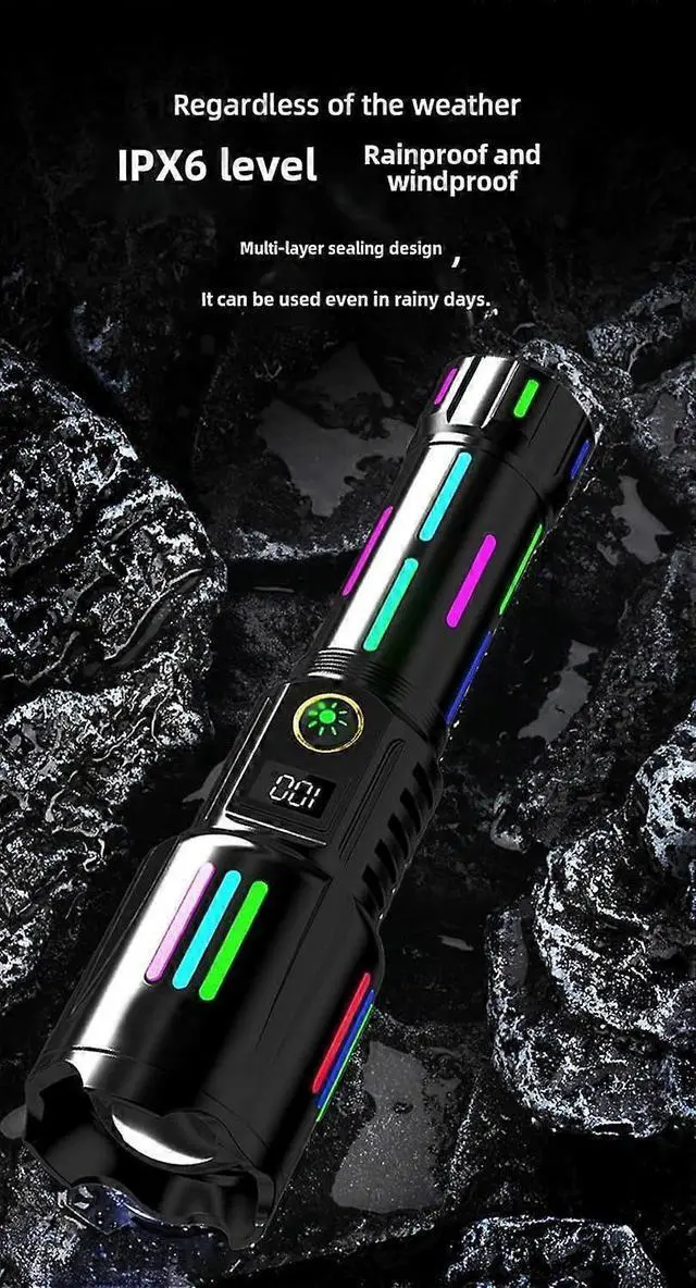 This powerful rechargeable tactical flashlight is your ultimate outdoor and emergency companion. Built with aviation-grade aluminum alloy and IP67 waterproof rating, it withstands heavy rain, dust, and shocks.