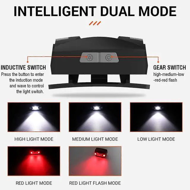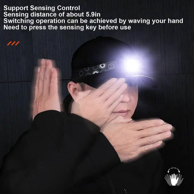 Upgrade your outdoor adventures with this ultra-bright, rechargeable LED headlamp featuring advanced hand-sensing control for effortless operation.