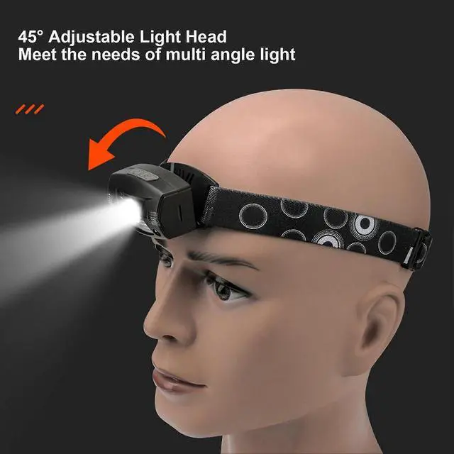 Ultra Bright & Adjustable: Provides powerful illumination with a 45° adjustable angle and red auxiliary light for SOS warnings and vision protection.