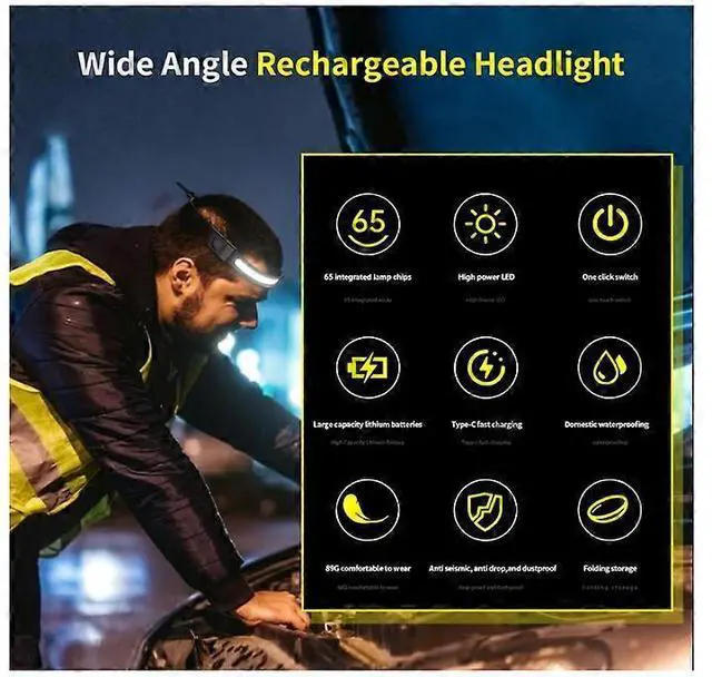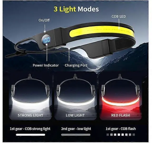 Super Bright COB LED: Wide-angle beam provides ample lighting without head movement