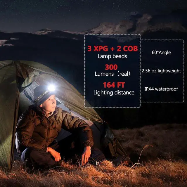 Upgrade your outdoor adventures with this 2-pack of rechargeable headlamps, featuring 300 lumens of super bright light and versatile functionality.