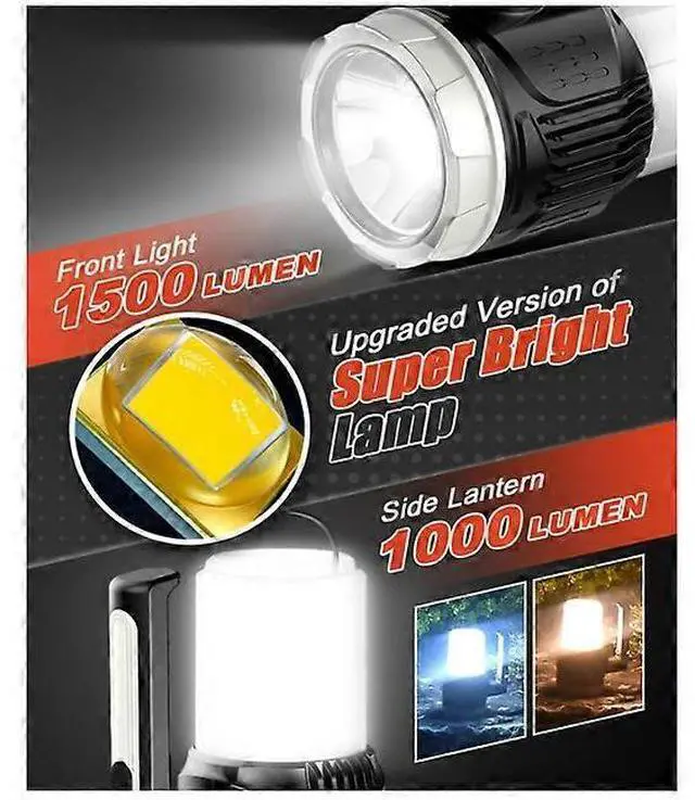 Illuminate your outdoor adventures with our powerful 1500 lumen rechargeable camping lantern. Featuring a 3700mAh battery and fast USB-C charging, it fully recharges in just 4 hours and provides up to 10 hours of continuous light. Perfect for camping, hiking, fishing, and emergency power outages.