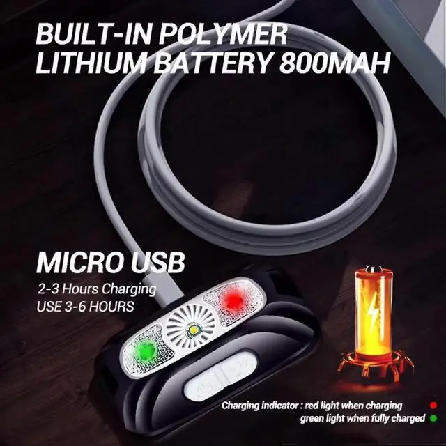 **USB Rechargeable Battery**: Eco-friendly power via USB cable, eliminating disposable batteries for fishing, camping, or night runs.