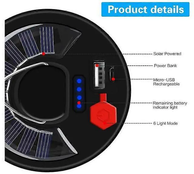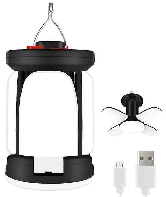 Compact folding design with built-in hook for easy portability and hanging in tents, rooms, or vehicles