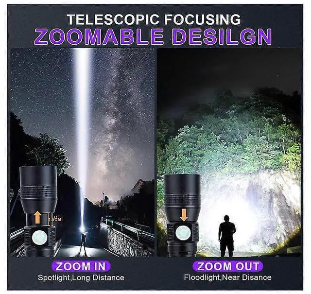 * **Ultra-Bright & Long-Lasting: ** T6 LED bulb delivers 2000 lumens with a 100, 000-hour lifespan, illuminating entire yards or focusing up to 660 feet.