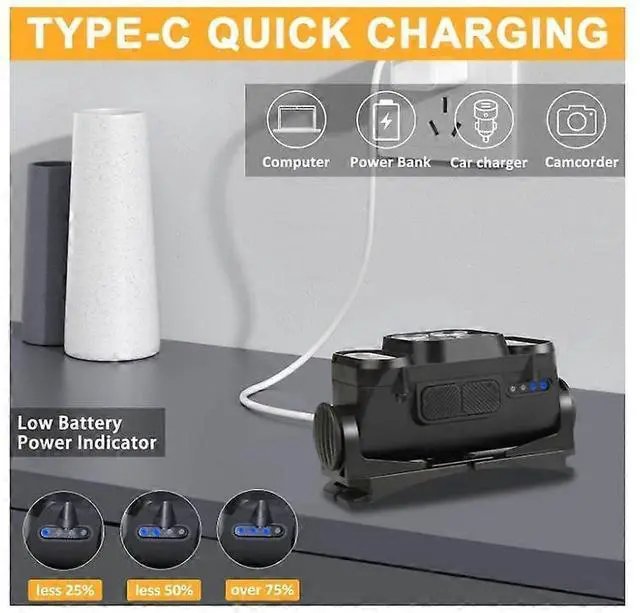 **Rechargeable & Long-Lasting**: Built-in Li-ion battery with Type-C USB charging, up to 8 hours runtime on low mode, plus low-battery indicator.