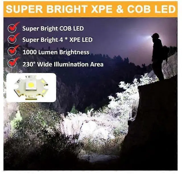 **Super Bright LED Lighting**: 4 XPE LED spotlight and COB LED floodlight deliver 1000 lumens for clear vision in dark environments.