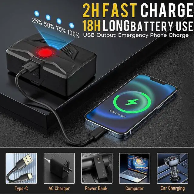 - **Comfortable Design & Power Display**: Memory foam padding for extended wear and LED indicators showing battery level (25%-100%). Ideal for camping, cycling, hiking, and emergency use, ensuring safety and convenience in any scenario.