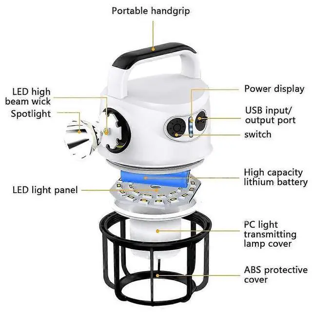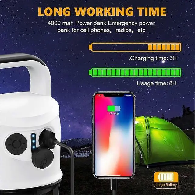 **Built-in 3600mAh Power Bank**: Rechargeable batteries provide up to 8 hours of light and can charge smartphones during emergencies like power outages or storms.