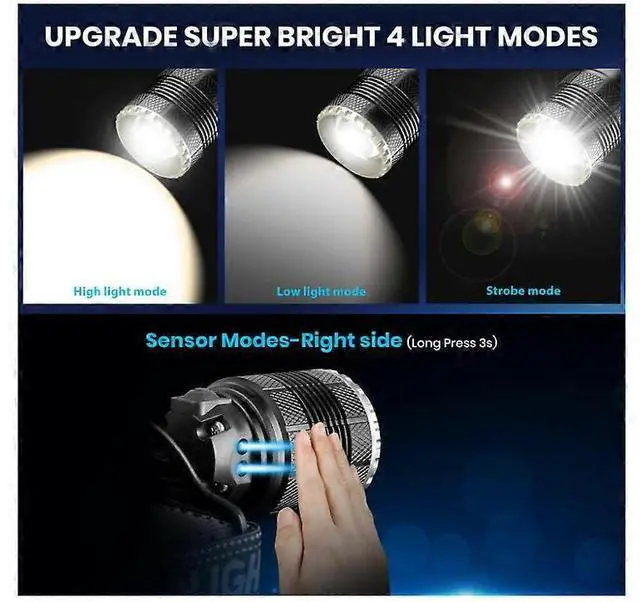 * **4 Lighting Modes & Sensor Function**: Easily switch between strong light, low light, strobe, and a convenient sensor mode for hands-free operation.