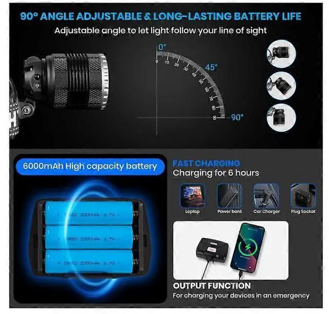 000 Lumens Super Brightness**: Powered by an upgraded XHM99 LED chip, it outshines competitors with a beam range up to 1, 000 meters, ideal for long-range visibility.
