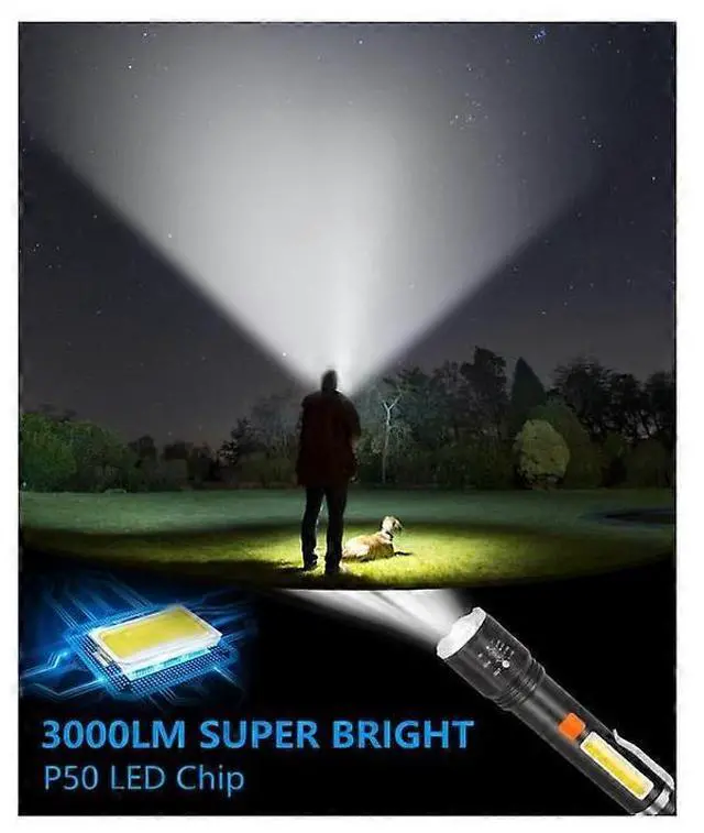 3000 lumens max brightness with P50 chip LED, reaching up to 500m for 50, 000 hours of use