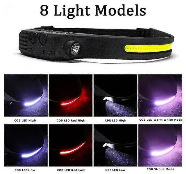 8 lighting modes (COB high/low, red high/low, XPE high/low, brighter mode, strobe) for adaptable illumination