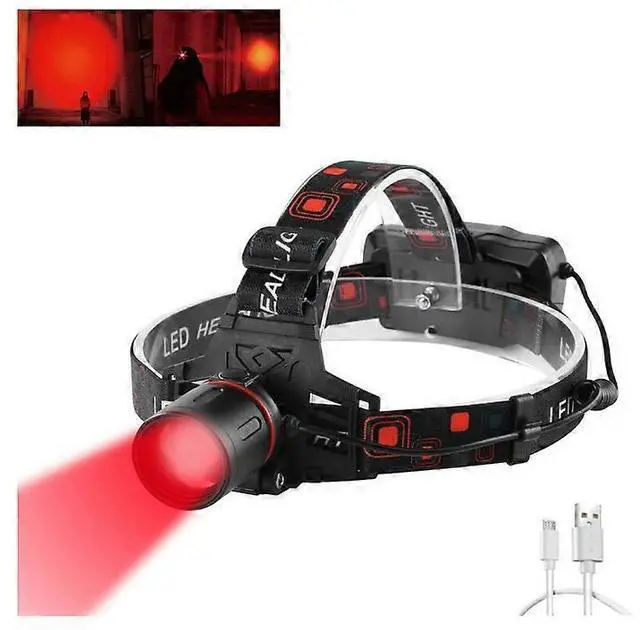 This rechargeable LED headlamp is designed for versatility and convenience, featuring a powerful red light that won't disturb animals or night vision. Ideal for hunting, camping, fishing, and more, it offers adjustable focus and multiple lighting modes to suit any situation.