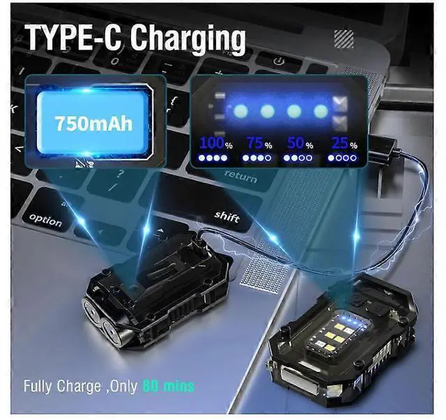 USB-C fast charging: full recharge in 80 minutes with 750mAh battery