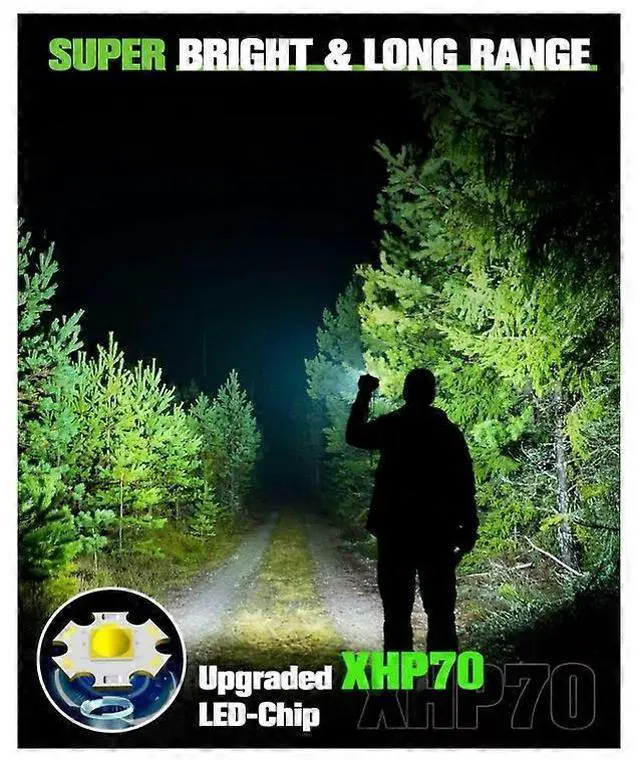 Lumens**: Equipped with advanced XPH90 LED beads for intense illumination up to 500m, ideal for low-visibility conditions like fog or rain.