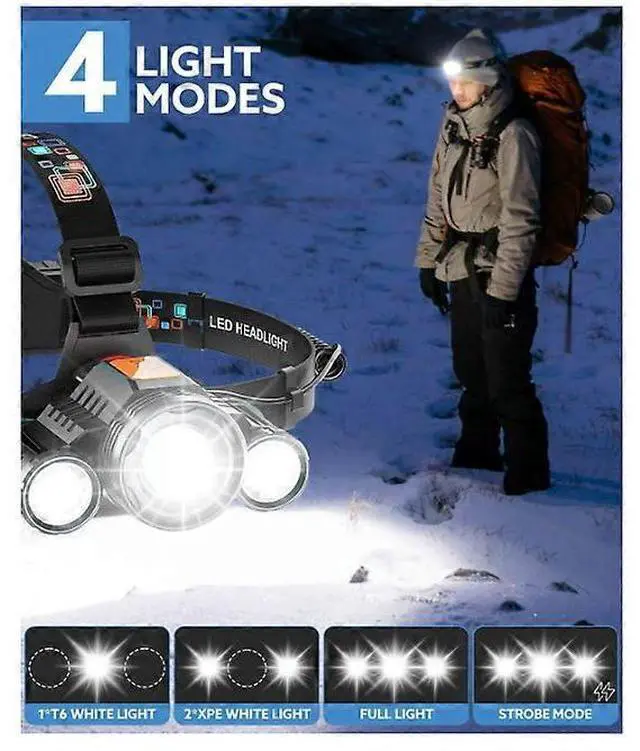 Experience powerful, hands-free lighting with this rechargeable LED headlamp, designed for versatility and durability.
