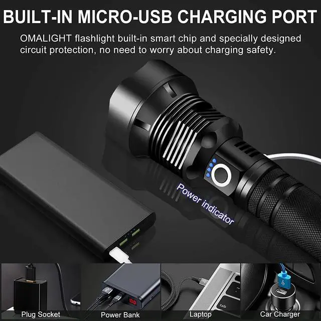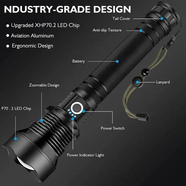 • Complete Package: Includes flashlight, USB charging cable, lanyard, and instruction manual.