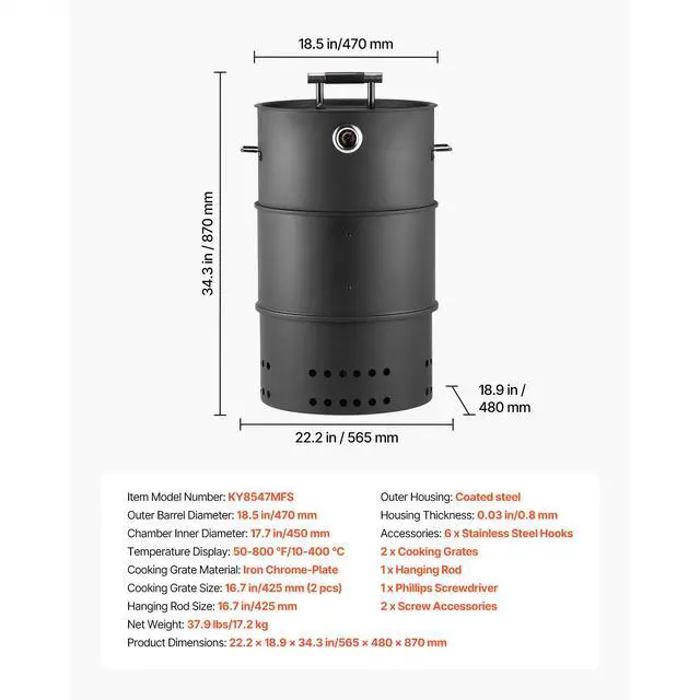 Cooking Grate Size: 16.7 in/425 mm (2 pcs)