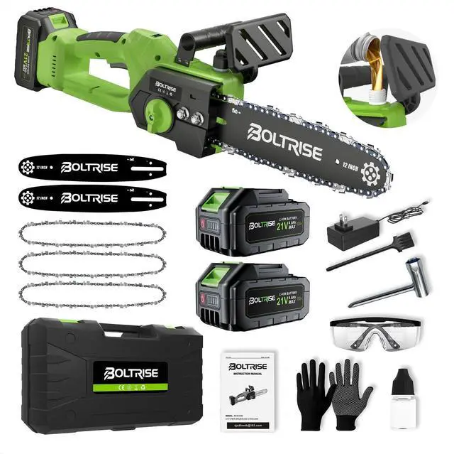 | Included Components | battery charger, 8ml oil bottle, 4000mah Removable battery,12-inch chainsaw chain |