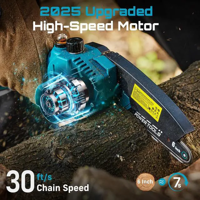 POWERFUL & SMOOTH CUTTING: SEESII mini chainsaw is equipped with a powerful 900W motor and a precision-hardened chain, achieving chain speeds up to 30ft/s. Cut effortlessly through wood up to 15cm thick in just 7 seconds, as smoothly as a hot knife through butter. Even thicker pieces of wood that other chainsaws struggle with are easily cut. Compared to traditional motors, it offers 30% higher cutting efficiency and doubles the lifespan, saving you the cost of frequent machine replacements.