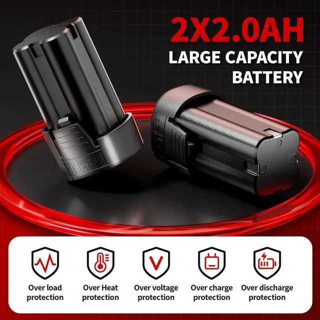 [High Performance Battery]: Power ratchet 3/8 cordless comes with 2 x 2000 mAh rechargeable batteries. Its estimated that the life expectancy of each battery is at least a thousand times cycles, stop worrying about battery life. Moreover, bidirectional heat output channel can accelerate heat dissipation and effectively stabilize the working temperature of the battery