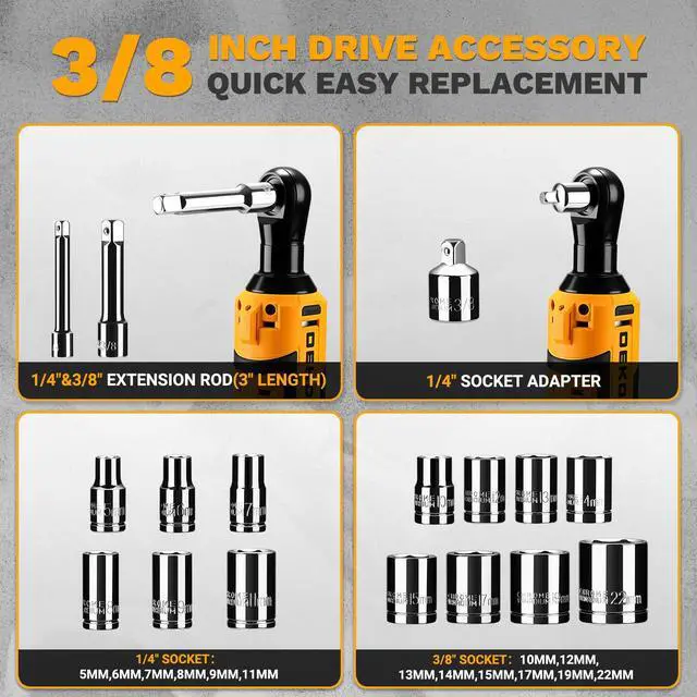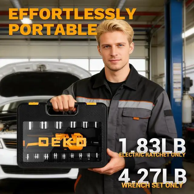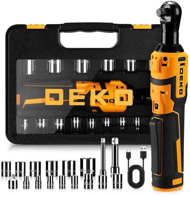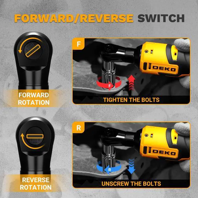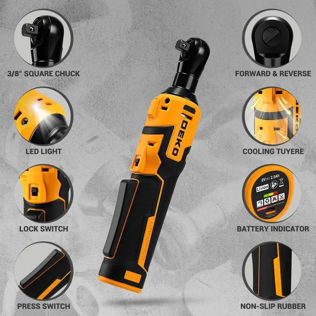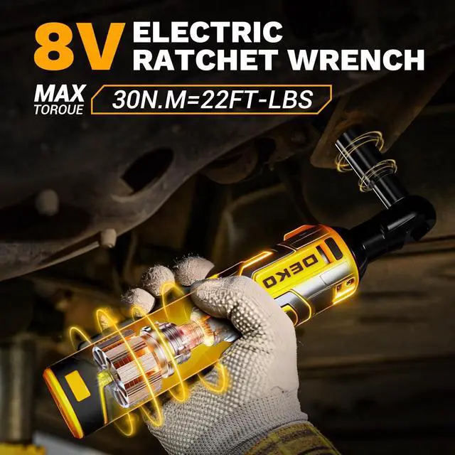 Lightweight, Portable & Easy Storage: The DEKOPRO 8V cordless ratchet wrench weighs only 1.83 lbs. Paired with an extension bar, it allows users to work in confined spaces and engine compartments. The electric ratchet wrench set comes with a storage case that fits all accessories, making organization easy and preventing loss.