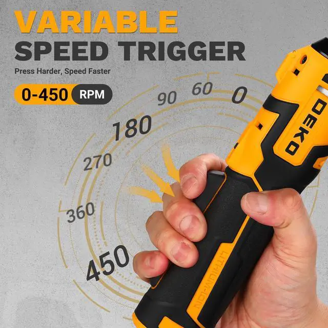 Precision Adjustable Speed Control: The cordless ratchet wrench includes a 0-450 RPM variable-speed trigger, allowing fine-tuning of the power ratchet's speed to meet specific job requirements for optimal performance and precision. This is especially valuable for tasks requiring delicate handling or precise control. The variable speed of the battery ratchet wrench helps create a more controllable and safer work environment.
