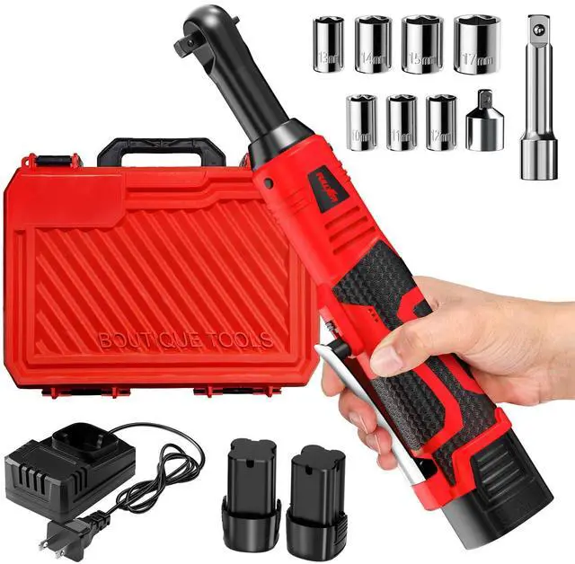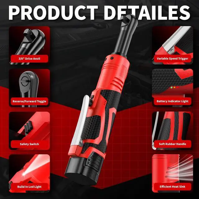 [High Performance Battery]: 3/8" cordless ratchet comes with 2 x 2000 mAh rechargeable batteries. Its estimated that the life expectancy of each battery is at least a thousand times cycles, stop worrying about battery life. Moreover, bidirectional heat output channel can accelerate heat dissipation and effectively stabilize the working temperature of the battery