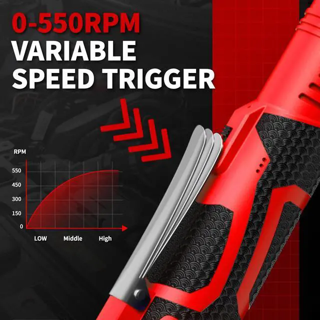 [Powerful Motor]: Electric wrench provides 16.8V pure copper motors, with a max torque of 40 ft-lbs and 550 rpm maximum variable speed. Its speed can be adjusted according to different task needs, help you to tighten or remove nuts easily, making it perfect for any auto maintenance, construction or home repair work
