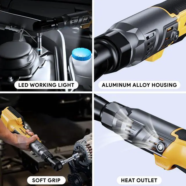 The aluminium alloy housing helps prevent damage from automotive oils or solvents and make ACROPOW cordless ratchet wrench more durable.