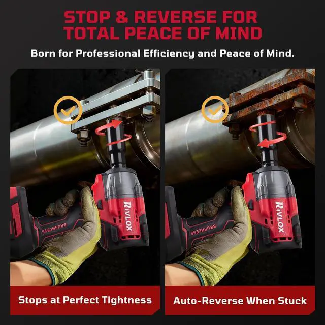 SMART SELF-STOP & REVERSE: Prevents damage by stopping at perfect tightness. Reverses instantly to loosen stuck bolts.