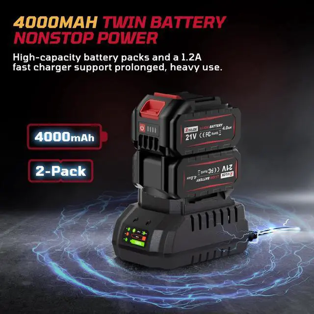 COMPLETE CORDLESS KIT: Includes 2 × 4000mAh batteries & a sturdy case. Work anywhere, with LED light for dark spaces.