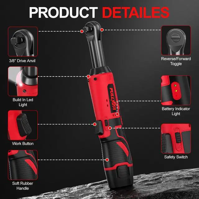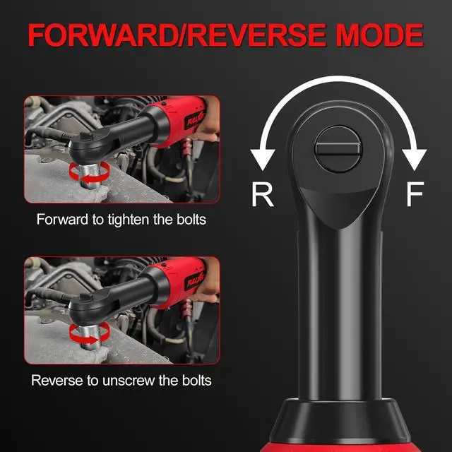 [Ergonomic Design]: Battery ratchet is made of high-quality alloy material, weighs merely 2 lbs (with battery), ultra-slim head design easy to reach narrow spaces. Impact ratchet features an ergonomic non-slip rubber grip handle, cushion the impact while working, minimizes hand fatigue, and increase your comfort when using
