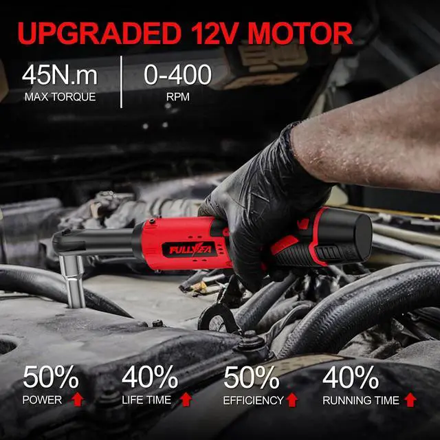 [Powerful Motor]: FULLYEA Electric wrench offers 12V pure copper motors, with a max torque of 45Nm and 400 rpm maximum speed, helping you to tighten or remove nuts easily, making it perfect for any auto maintenance, construction or home repair work