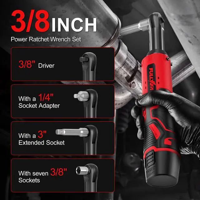 Electric Ratchet Wrench Set, 12V Cordless Ratchet Wrench 3/8", 400 RPM Power Ratchet Tool Kit with LED Light, 7 Sockets, 1/4" adapter, 2 Packs 2000mAh Lithium-Ion Battery and Fast Charger
