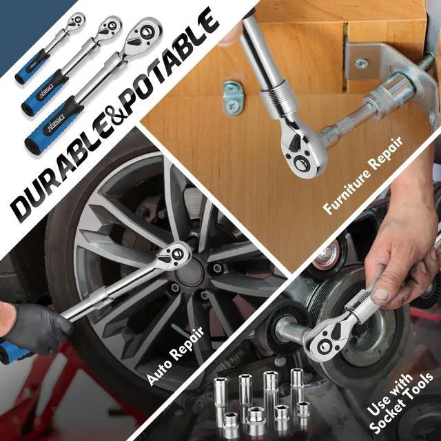 | 1/4" Drive Ratchet | 1/4, 3/8, 1/2-Inch | 3/4 -Inch | 1/4, 3/8, 1/2-Inch |